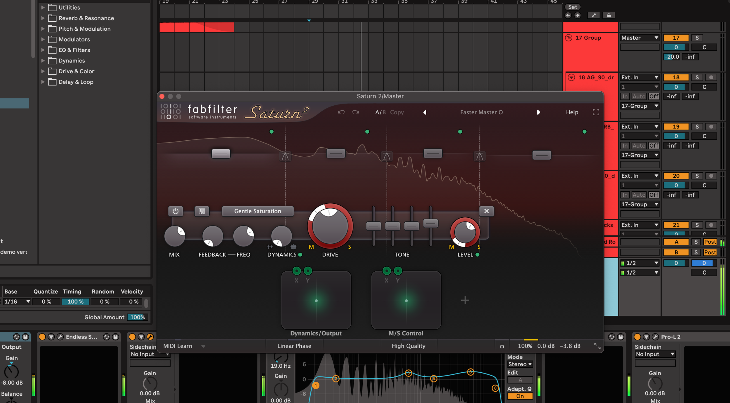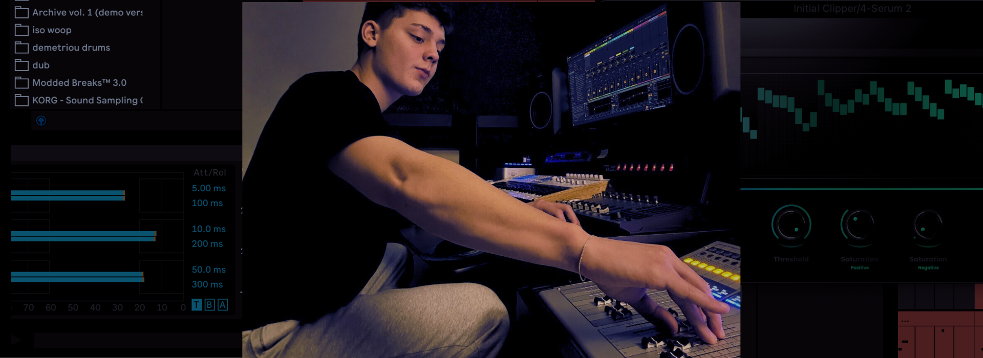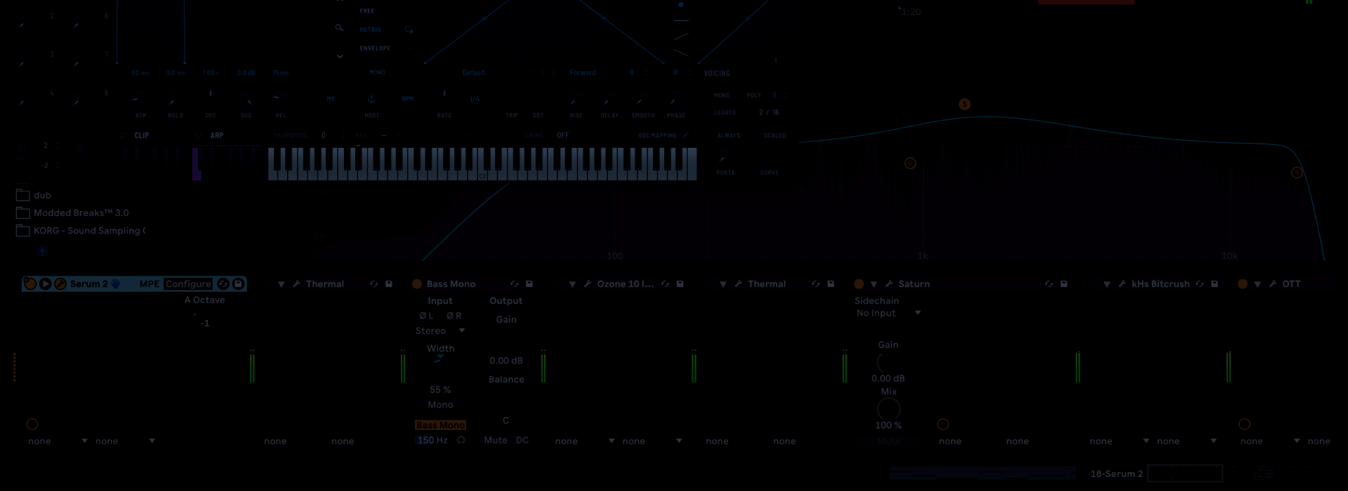 I started with some dystopian, saturated chords. I used an arpeggio as a segue into a fast-paced “action movie” section. Hard-hitting synths, glitchy and loud drums, and loads of post-processing helped this section come to life. I used Serum to create some atmospheric sounds. Then I applied a low-mid focused mastering chain with plenty of distortion.